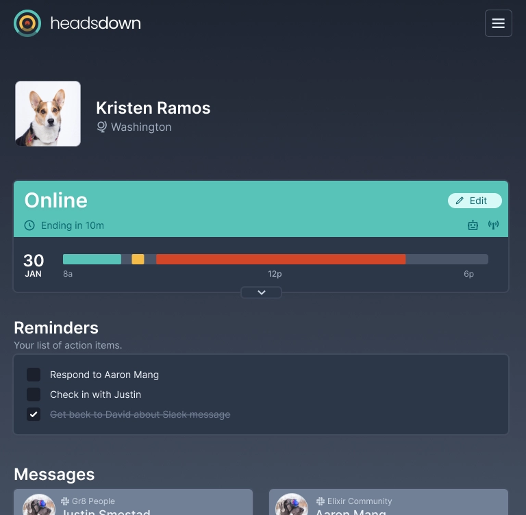 HeadsDown is a bouncer for my time. I can push off non-urgent communication until I have time which is a game-changer for my productivity.